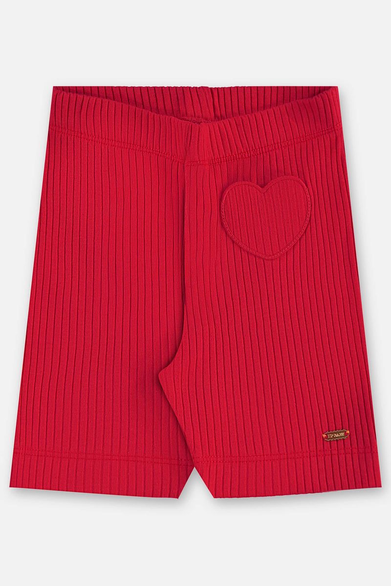 Bermuda infantil para menina, confeccionada em ribana canelada com toque macio e confortável. Possui elástico na cintura para melhor ajuste, acabamento reforçado e bolsinho funcional em formato de coração, que traz um charme extra à peça. Destaque para a plaquinha metálica decorativa que valoriza o design. Disponível em cores vibrantes e clássicas, perfeita para o dia a dia das meninas.