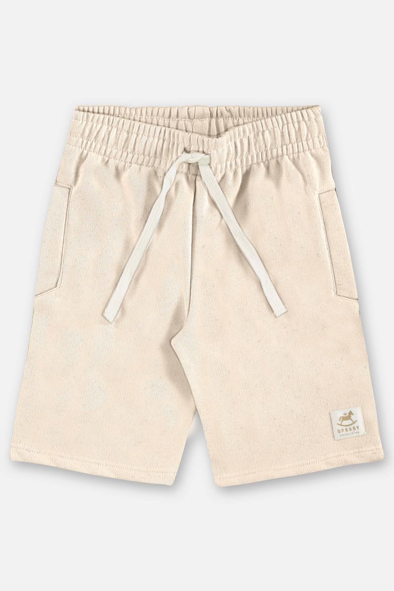 Bermuda infantil para menino, confeccionada em moletom linho, com toque macio, leve e confortável. Modelo com cós de elástico reforçado e cadarço funcional para melhor ajuste. Possui bolsos frontais, além de bainha embutida para um acabamento delicado e resistente. A etiqueta decorativa na lateral agrega estilo à peça.