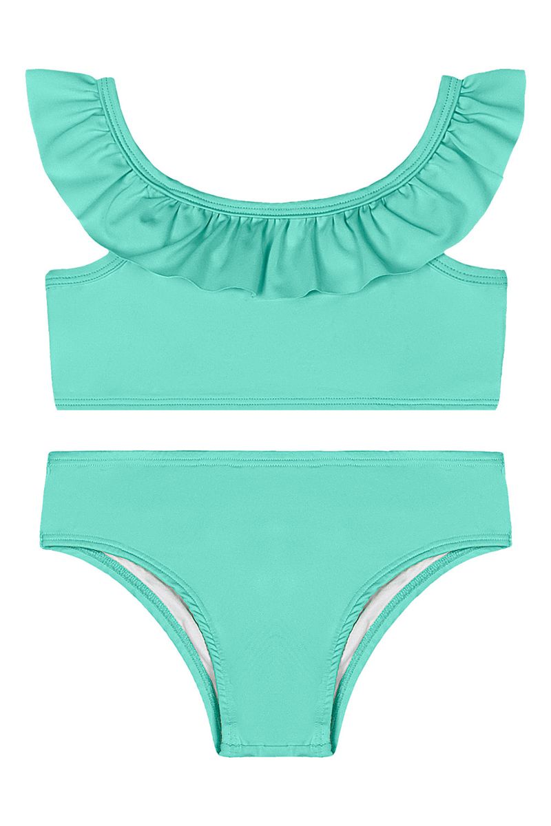 Biquíni para menina, com segurança e conforto garantidos, produzido em malha UV Dry (poliéster com elastano) com proteção solar FPS 50+, perfeito para os dias quentes. O top, com alças largas, possui babado franzido na parte frontal, adicionando delicadeza e charme ao visual. Conta com forro interno para maior conforto. A calcinha é forrada na frente e atrás e possui elástico embutido na cintura e nas pernas, oferecendo ótimo ajuste ao corpo. Um conjunto alegre, funcional e estiloso, ideal para aproveitar a praia ou a piscina com liberdade e proteção.