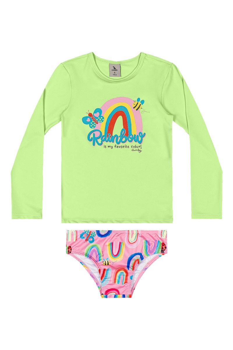 Biquíni infantil com conforto e segurança garantidos. O conjunto é confeccionado em malha UV Dry (poliéster com elastano), que oferece fator de proteção solar FPS 50+. A blusa possui mangas longas, costura reforçada e estampa vibrante, adicionando um toque alegre e criativo ao visual. A calcinha conta com forro frontal e traseiro, além de elástico embutido que garante ajuste perfeito ao corpo. A estampa rotativa complementa o look com charme. Uma escolha versátil e encantadora para praia, piscina ou atividades ao ar livre.