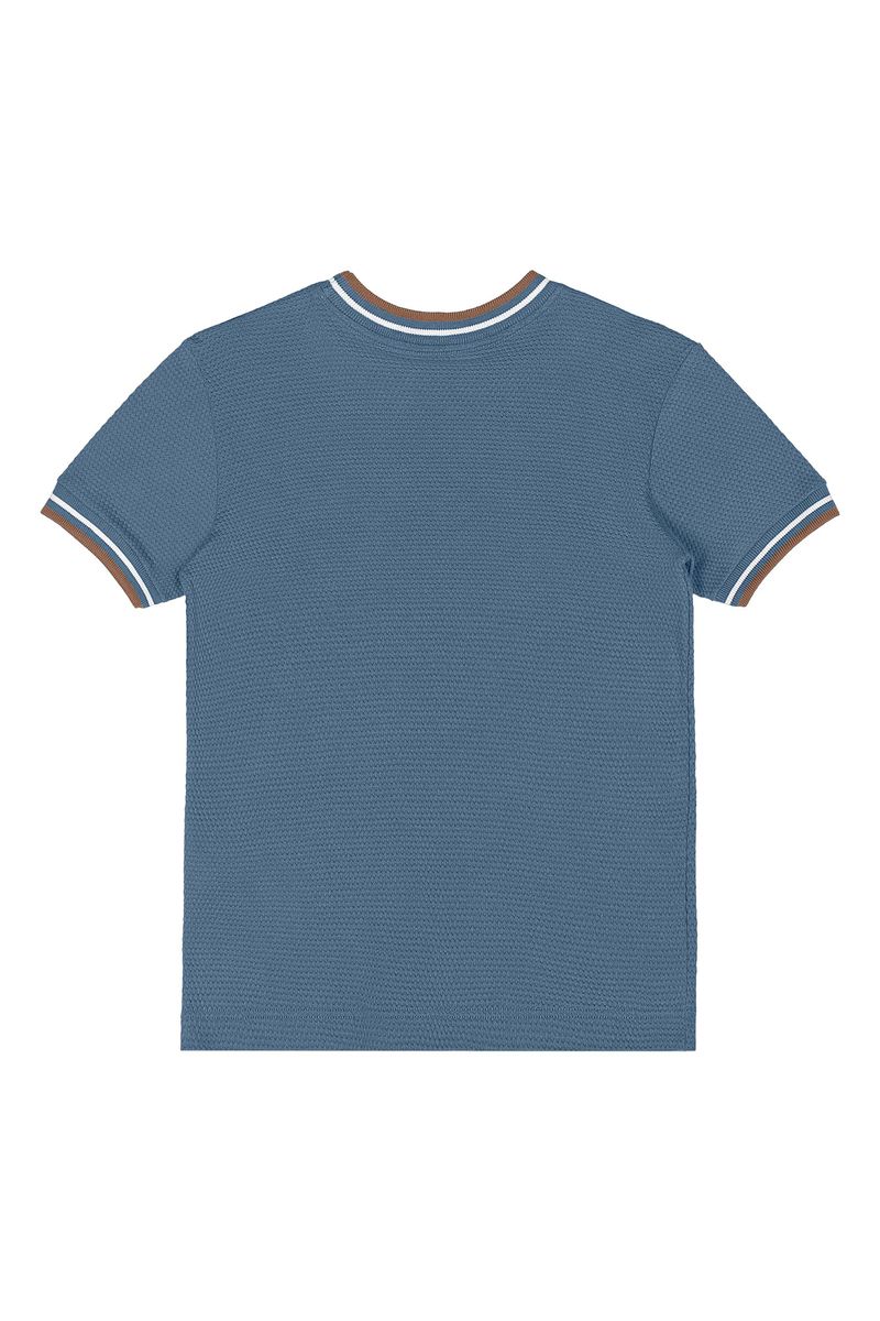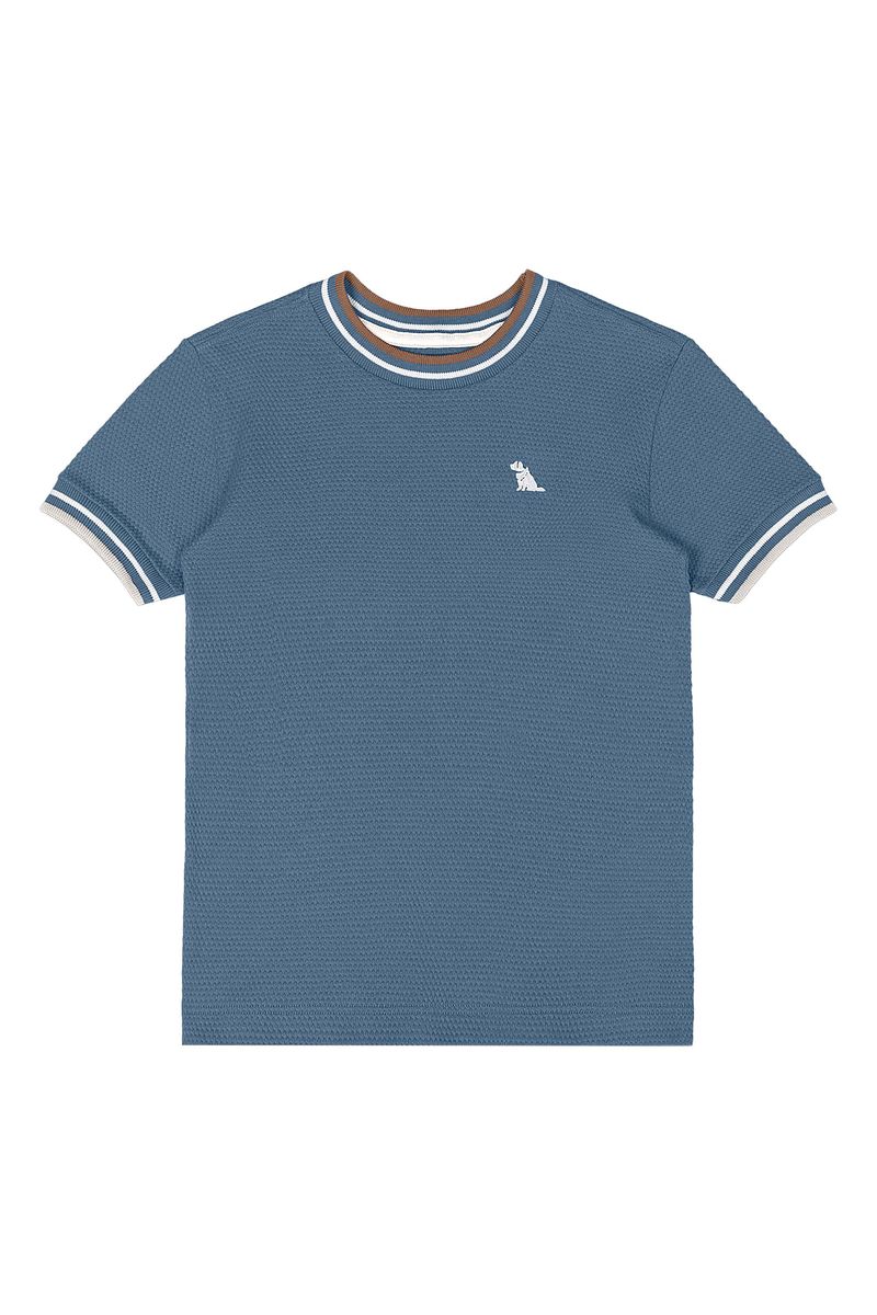 Camiseta infantil masculina confeccionada em meia malha colmeia (algodão), que recebe esse nome por conta do seu visual que lembra os favos de uma colmeia. Conta com gola redonda com acabamento reforçado e punhos em retilínea. A peça traz bordado no peito com o ícone da marca. Peça de tom básico, coringa no guarda-roupa dos pequenos, perfeita para o dia a dia dos meninos.