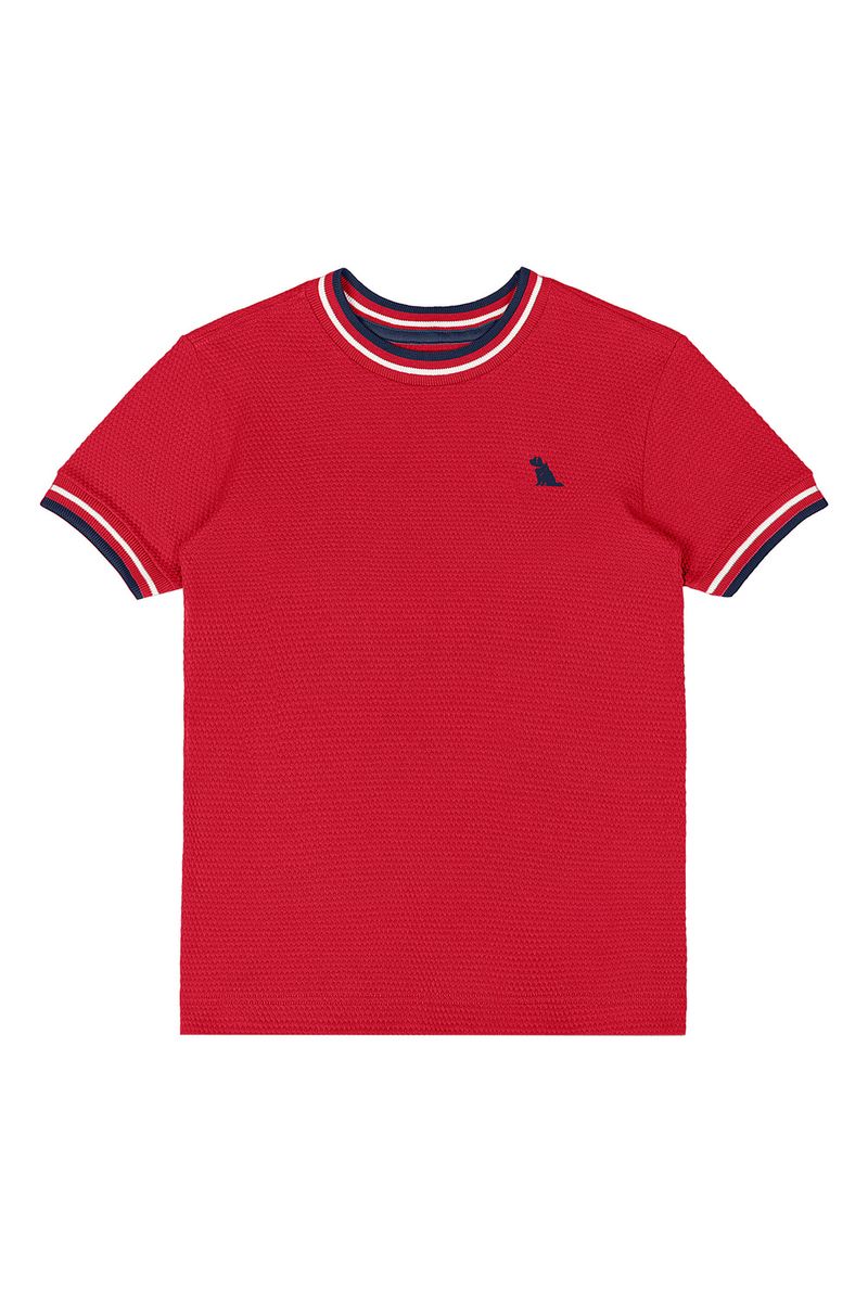 Camiseta infantil masculina confeccionada em meia malha colmeia (algodão), que recebe esse nome por conta do seu visual que lembra os favos de uma colmeia. Conta com gola redonda com acabamento reforçado e punhos em retilínea. A peça traz bordado no peito com o ícone da marca. Peça de tom básico, coringa no guarda-roupa dos pequenos, perfeita para o dia a dia dos meninos.