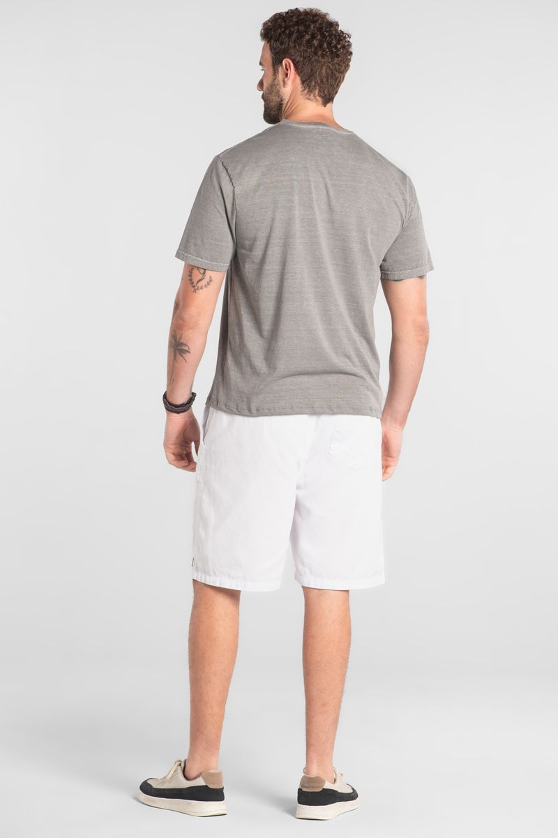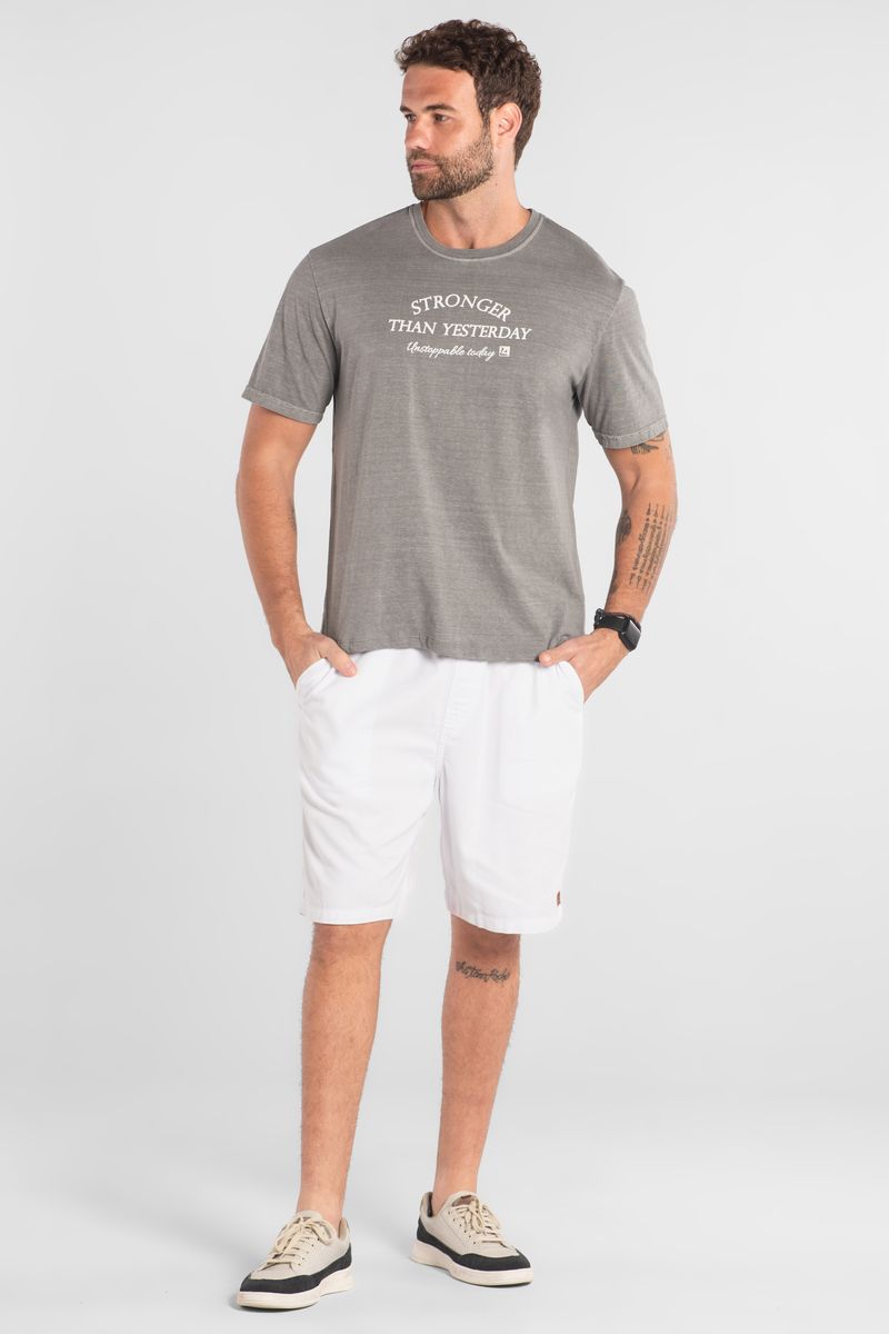 Camiseta masculina confeccionada em meia malha (algodão), com toque macio e confortável para o dia a dia. Possui gola em ribana com acabamento reforçado, mangas curtas e estampa frontal com escrita, que adiciona estilo ao visual básico. Combine com tênis e bermuda em finais de semana ou com calça jeans para um visual casual moderno.