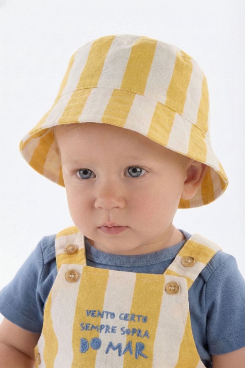 Este chapéu bucket infantil, de modelo unissex, é confeccionado em viscolinho e apresenta uma estampa digital exclusiva. Suas cores vibrantes e alegres permitem que ele seja facilmente combinado com diversos looks. Além de adicionar estilo, o chapéu proporciona proteção solar, sendo perfeito para atividades e passeios ao ar livre. Está disponível em dois tamanhos: P, ideal para crianças de 1 a 3 anos, e M, para as de 4 a 8 anos.