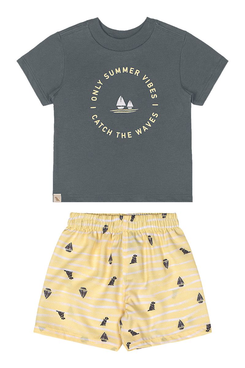 Este conjunto de verão para bebê menino traz uma combinação perfeita de leveza e praticidade. A camiseta em meia malha de algodão oferece toque suave e respirabilidade, com gola reforçada e estampa em alto-relevo puff. A bermuda é confeccionada em microfibra com elastano, com cós elástico e estampa sublimada que garante um visual descontraído e cheio de estilo. Ideal para passeios, brincadeiras ou uso diário.