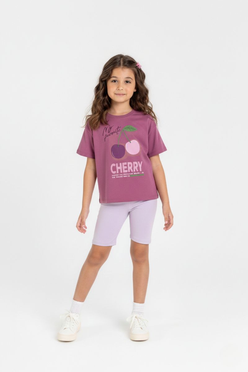 Conjunto infantil para meninas, composto por uma blusa confeccionada em meia malha, acompanhada por uma bermuda ciclista em cotton, peças que são ideiais para sua pequena aproveitar o verão com conforto. A blusa possui gola arredondada em ribana, cavas dos ombros deslocadas e estampa de cerejas, que complementa a peça e dá um toque especial ao conjunto. A bermuda possui elástico na cintura, que se ajusta conforme o corpo da pequena, fazendo com que a peça não caia.