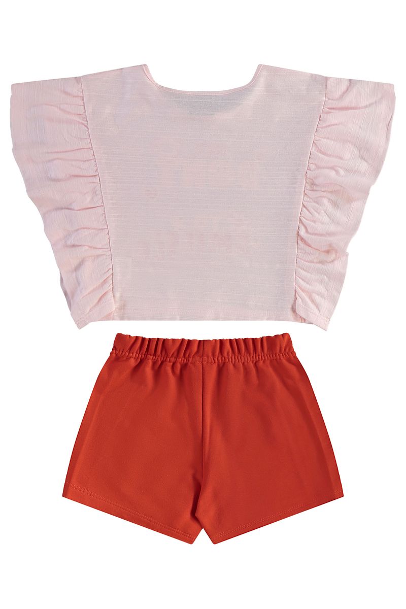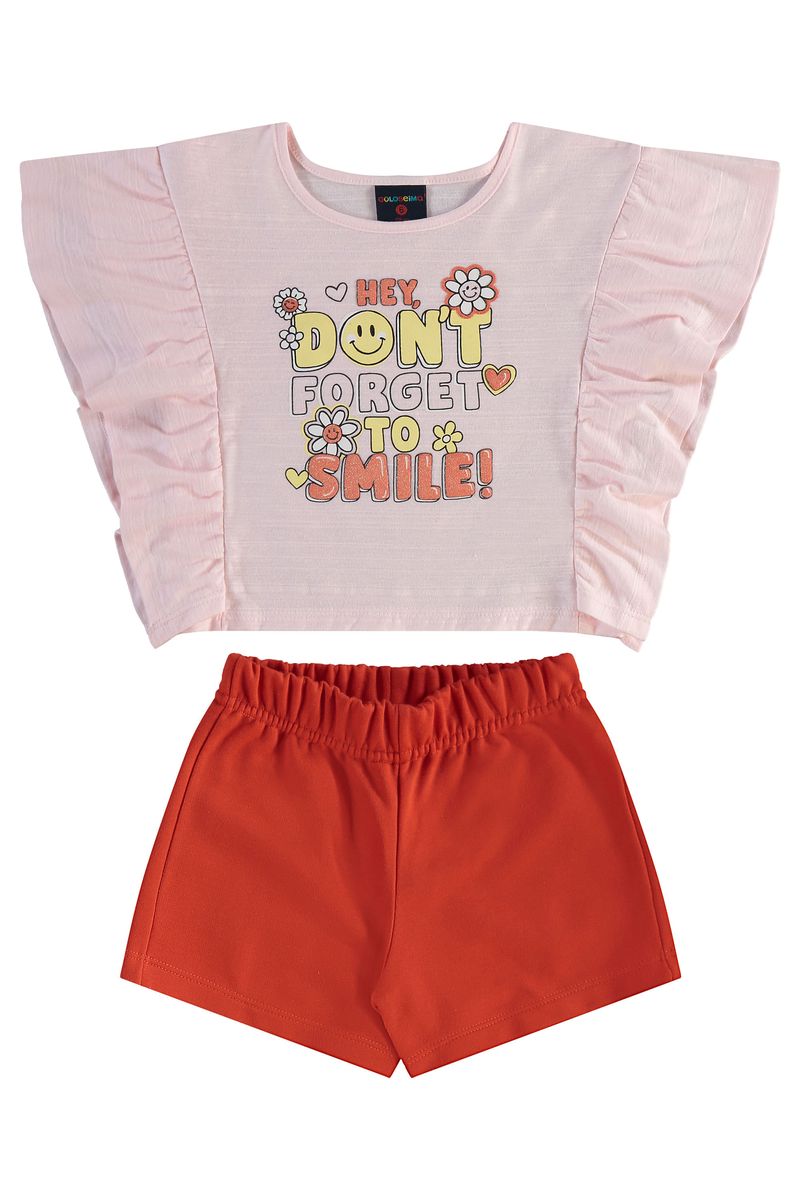 Conjunto infantil para menina, perfeito para os dias de diversão. A blusa, feita em meia malha flamê, tem um toque leve e confortável, com mangas de babados que adicionam delicadeza e uma estampa super divertida. O short, em moletom sem felpa, garante liberdade de movimento e ajuste perfeito com seu cós elástico. Um look estiloso e confortável para acompanhar as pequenas em todas as aventuras.