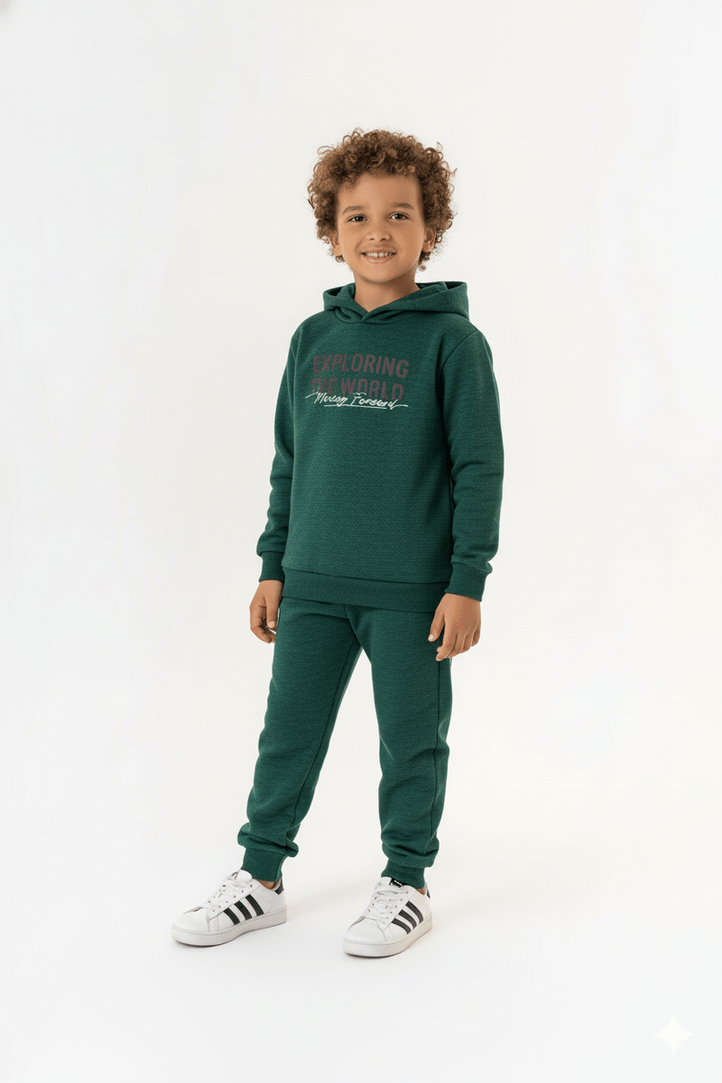 Conjunto infantil para menino, composto por blusão e calça, ambos em moletom sem felpa (algodão e poliéster). O blusão conta com capuz, estampa com 3D, e elástico nos punhos e barra, garantindo um caimento moderno e confortável. A calça tem elástico na cintura e nos tornozelos, ajustando a peça ao corpo e proporcionando liberdade de movimento. Conjunto prático e estiloso para acompanhar os meninos com conforto no dia a dia.