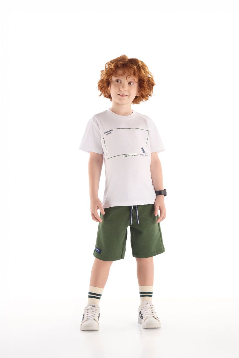 Com design atual e muito conforto, o conjunto infantil para menino é ideal para momentos casuais. A camiseta em algodão meia malha vem com estampa 3D aplicada e acabamento reforçado nos ombros. A bermuda em moletom sem felpa oferece leveza, maciez e praticidade, com elástico na cintura, cadarço decorativo e bolsos úteis.
