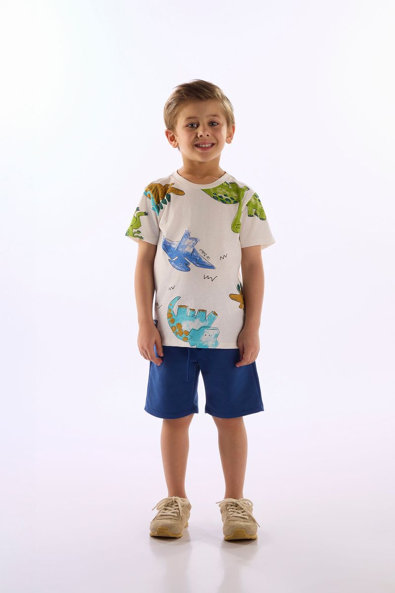 Prepare seu pequeno explorador para grandes aventuras com este conjunto cheio de estilo e conforto, composto por camiseta confeccionada em meia malha e bermuda em moletom sem felpa. A camiseta proporciona toque macio e refrescante para a pele, possui gola em ribana e estampa de dinossaurinhos que as crianças adoram. A bermuda conta com cós elástico com cadarço funcional, bolsos e braguilha falsa.