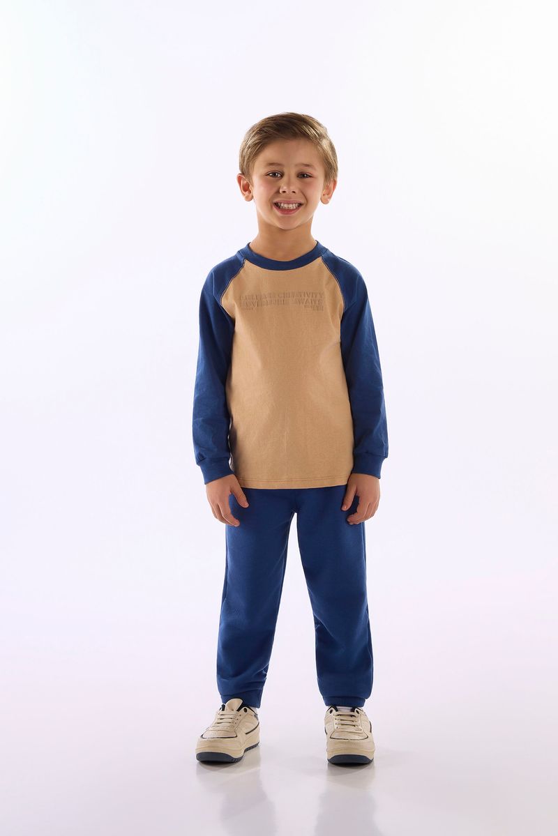 Este conjunto infantil masculino une conforto e estilo para as pequenas grandes aventuras do dia a dia. A camiseta é confeccionada em meia malha de algodão puro, garantindo toque macio e ótima respirabilidade para a pele. O design raglan, combinado à estampa frontal em relevo puff com detalhe em camurça, confere um visual moderno e descontraído. A calça, feita em moletom sem felpa com mistura de algodão e poliéster, oferece flexibilidade e conforto na medida certa, além de contar com cós elástico, cadarço decorativo e punhos em ribana para melhor ajuste ao corpo.