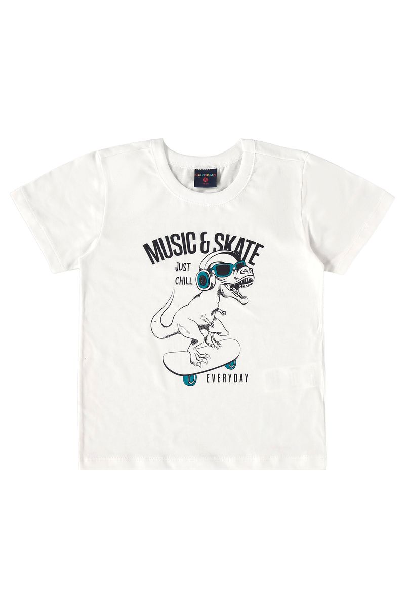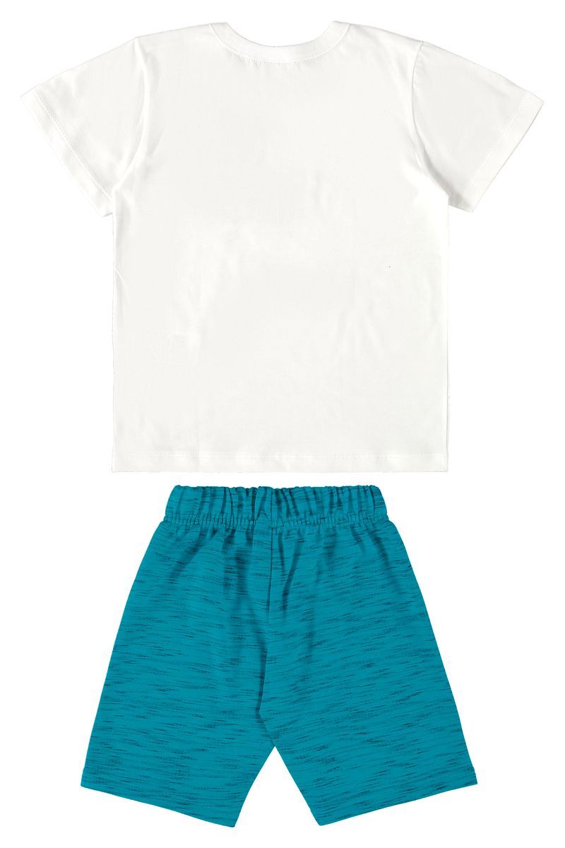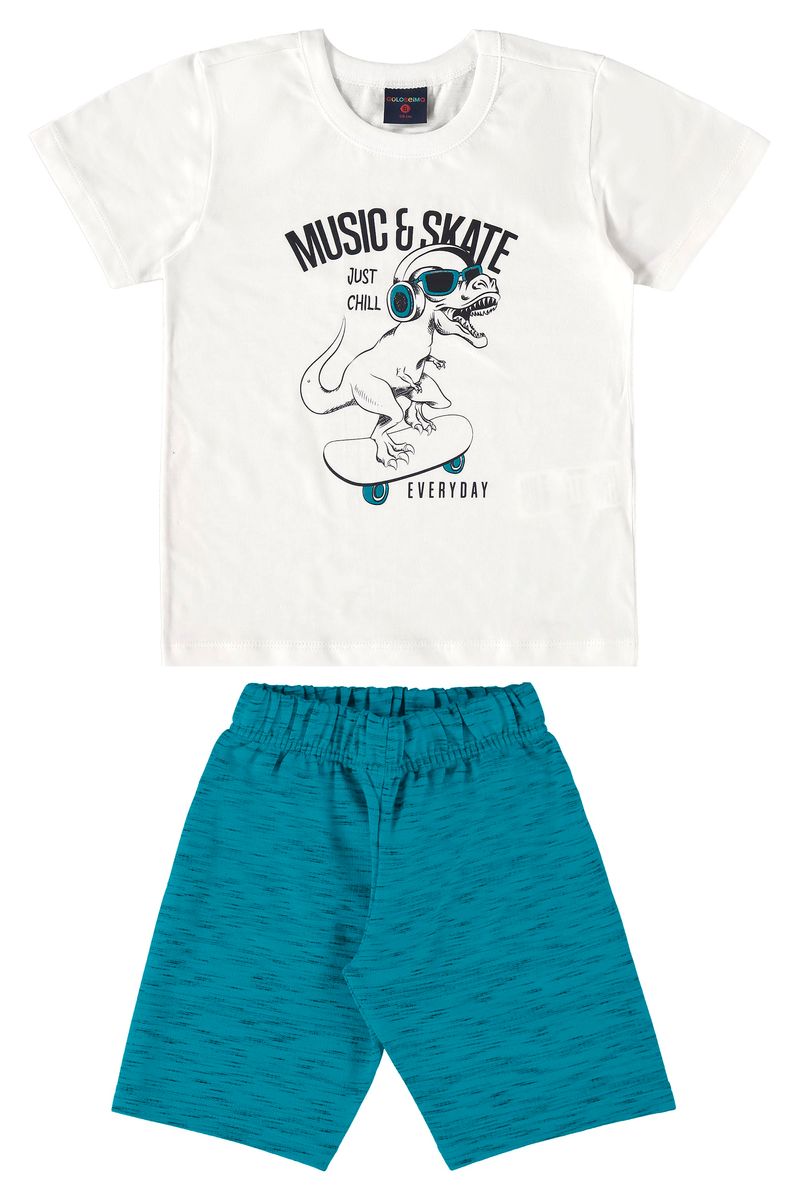 Conjunto infantil masculino, composto por camiseta manga curta em meia malha, com estampa divertida de dino com detalhes em puff e bermuda em moletom sem felpa jetblack.