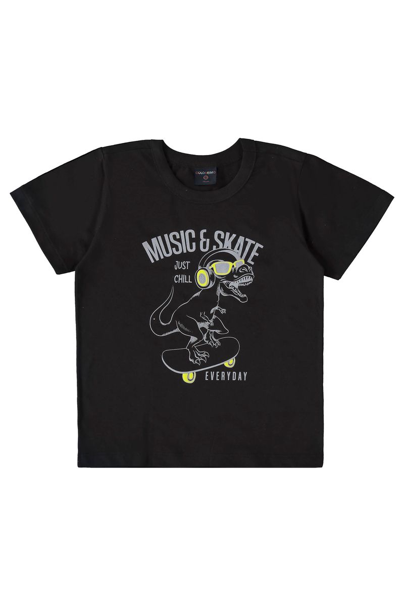 Conjunto infantil masculino, composto por camiseta manga curta em meia malha, com estampa divertida de dino com detalhes em puff e bermuda em moletom sem felpa jetblack.