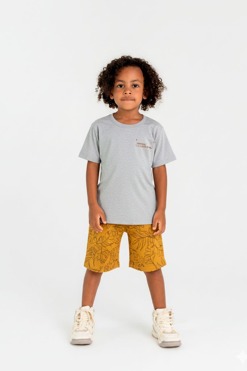 Conjunto infantil para menino, composto por uma camiseta em meia malha e uma bermuda em moletom. A camiseta conta com uma estampa divertida em puff e acabamento em debrum, proporcionando um visual moderno e confortável para as crianças. A bermuda, possui elástico ajustável na cintura, garantindo praticidade e liberdade de movimento durante as brincadeiras. A estampa na bermuda complementa o look, adicionando um toque descontraído.