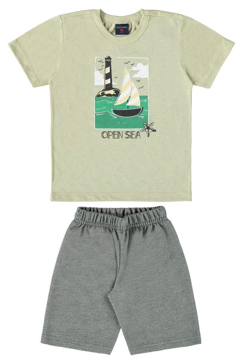 Conjunto perfeito para os pequenos aventureiros! Este conjunto infantil para menino é uma combinação encantadora de conforto e estilo. A camiseta, feita em malha mouline, é uma explosão de diversão com suas mangas curtas, gola redonda e uma estampa cativante de mar. Um barquinho e um farol em alto mar decoram a camiseta, criando uma atmosfera marítima irresistível. A frase "Open Sea" adiciona um toque de ousadia e exploração, a peça passa por um processo mágico, que transforma a camiseta de cor bege para uma peça de cor verde, chegando a tonalidade fofa e super linda, perfeita para que seu pequeno fique no estilo! A bermuda, feita em moletinho, é a escolha ideal para brincadeiras cheias de energia. Com um elástico na cintura para um ajuste confortável, esta bermuda de cor lisa e simples completa o conjunto de maneira prática e estilosa. Seu pequeno explorador estará pronto para aventuras confortáveis e cheias de estilo com este conjunto encantador.