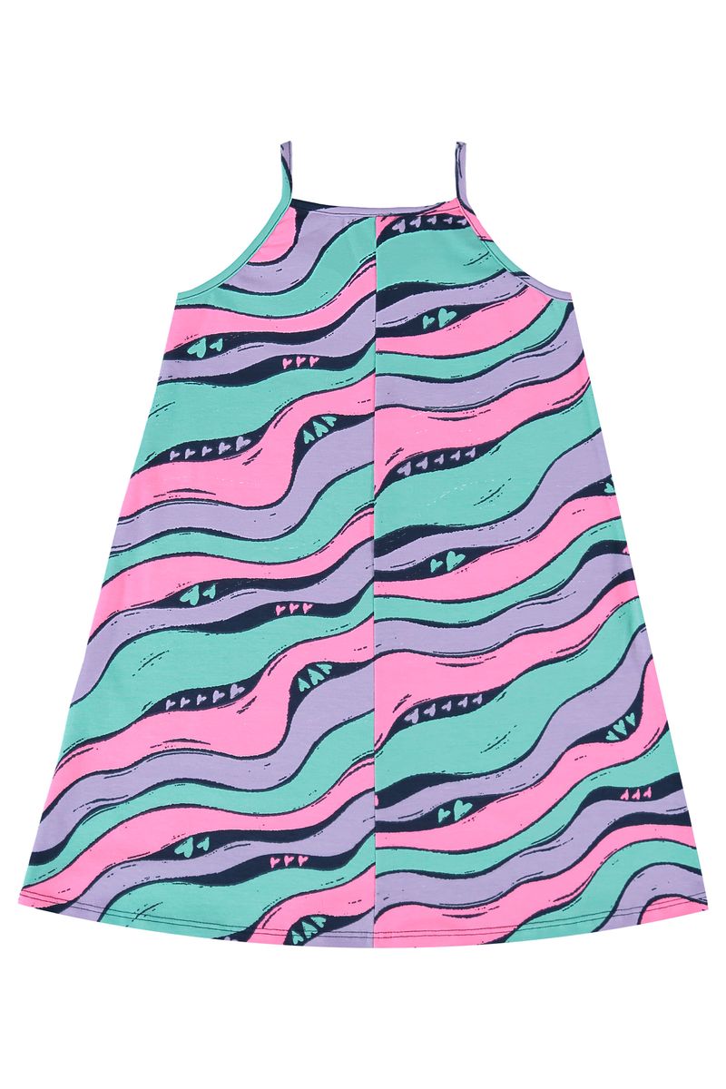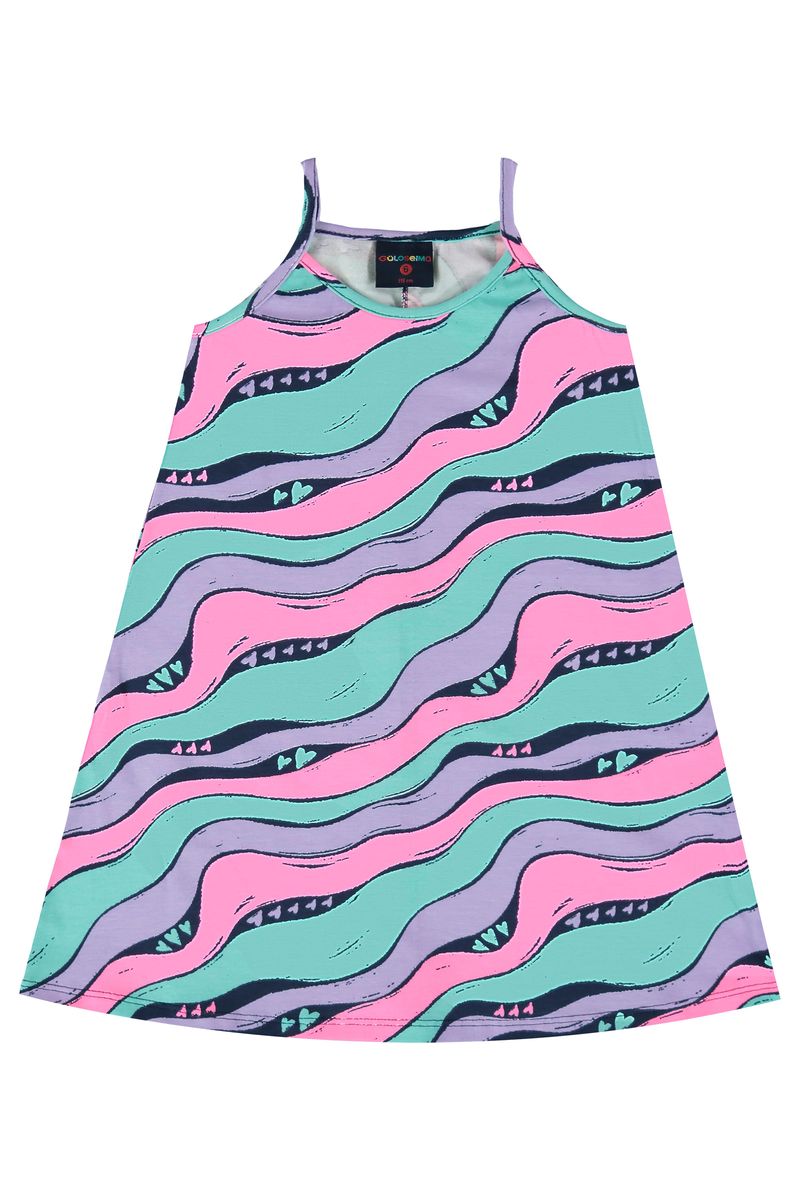 Vestido infantil para menina, confeccionado em malha. Possui alças delicadas que proporcionam um ajuste perfeito e fresco, ideal para os dias ensolarados. A estampa de listras coloridas adiciona um toque vibrante e alegre, sendo perfeito para qualquer ocasião.