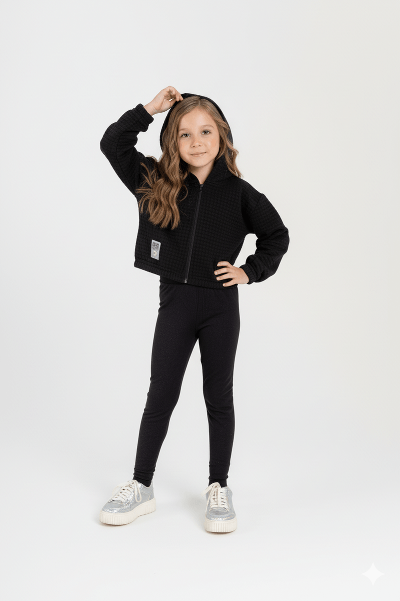 Perfeita para os dias mais frios, esta jaqueta para menina é confeccionada em jacquard matelassê, oferecendo aconchego e estilo. Possui mangas longas, capuz, fechamento por zíper, etiqueta decorativa e elástico nos punhos e na barra, garantindo ajuste confortável e proteção extra contra o frio.