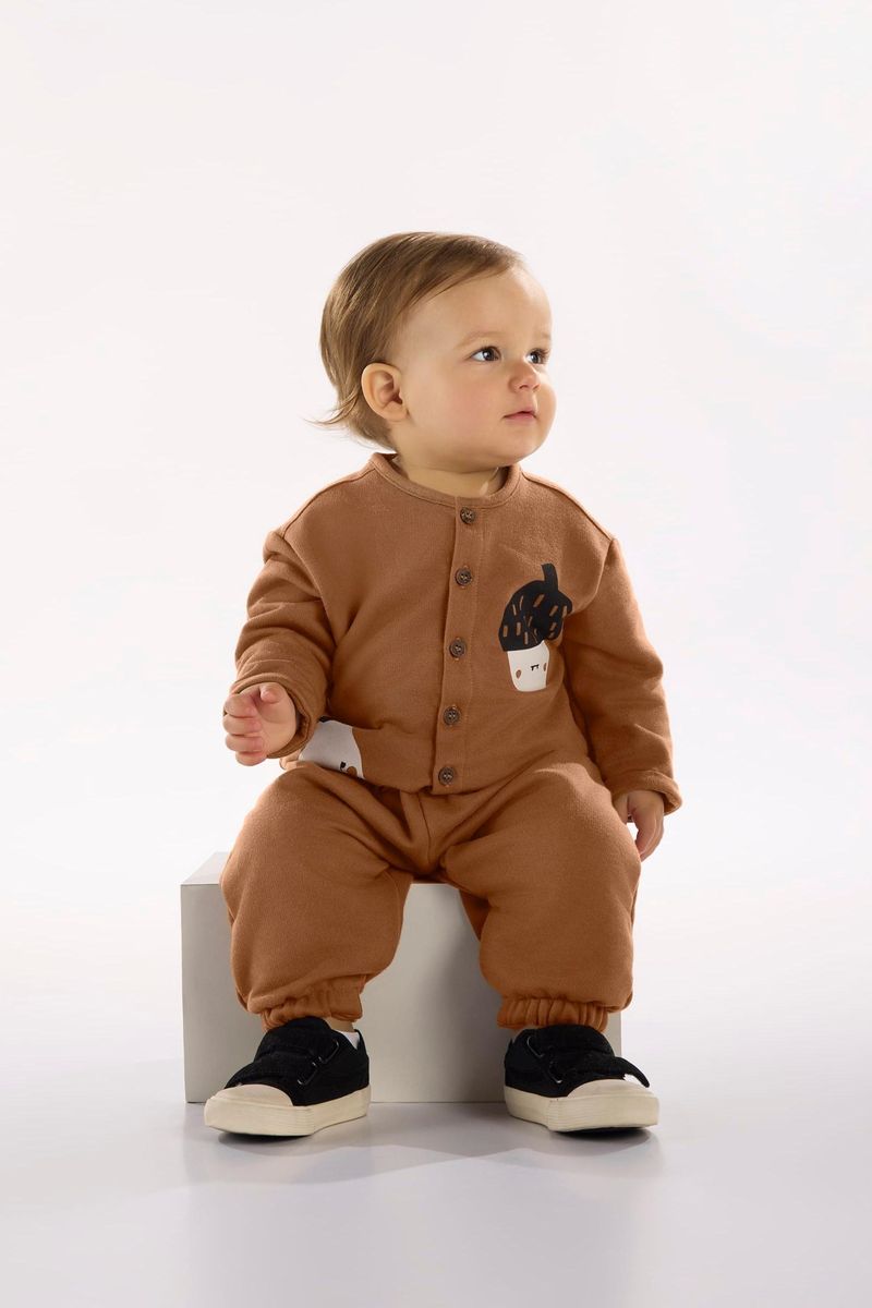Para os dias mais frios, este macacão para bebê menino, feito em moletom felpado, oferece conforto e proteção. Ele apresenta abertura frontal vertical com botões e caseados, além de abertura entre as pernas com botões de pressão ocultos para facilitar as trocas. A peça conta também com punhos elásticos, estampas e bolsos com bordado, adicionando um toque divertido e estiloso. Perfeito para o dia a dia ou ocasiões especiais, unindo praticidade e charme.