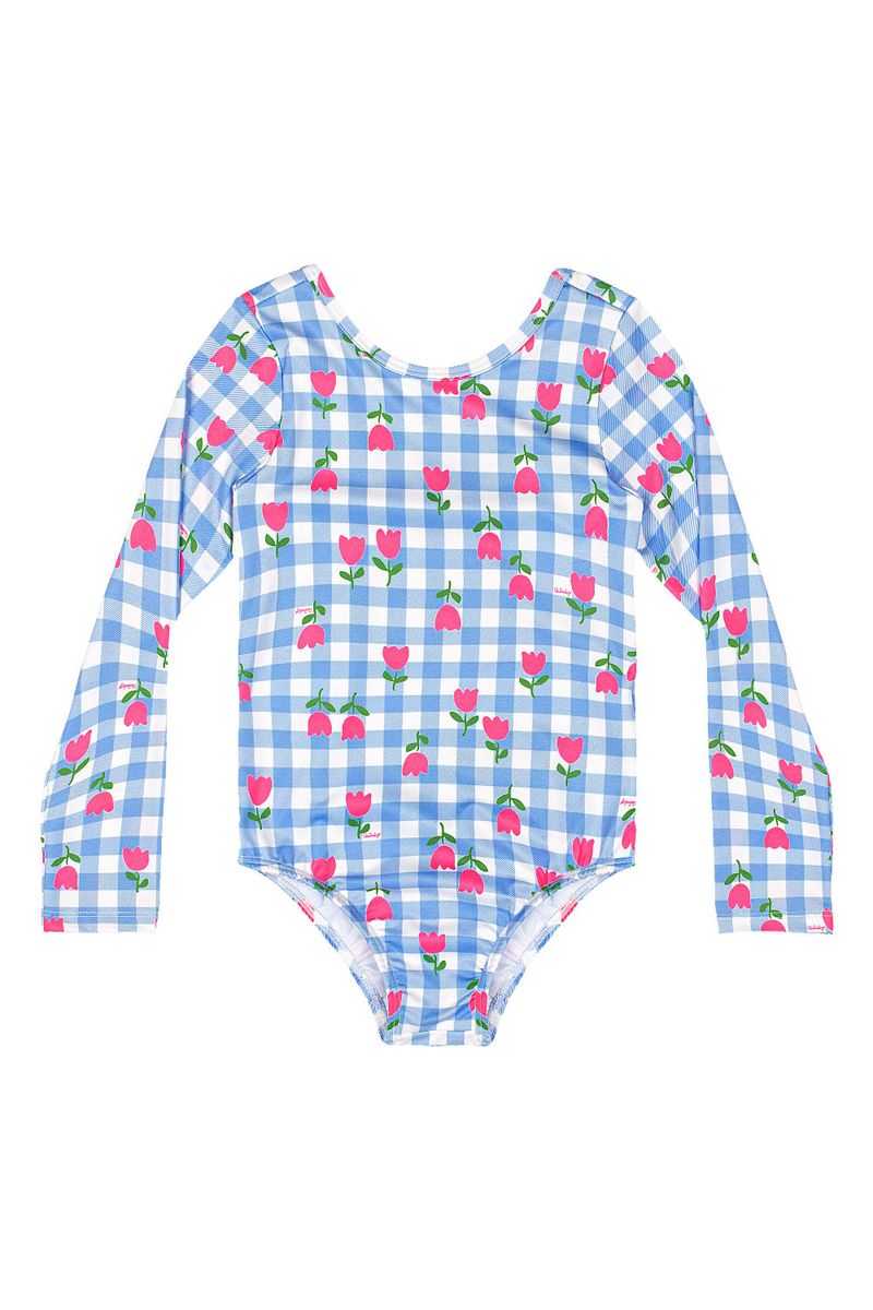 Maiô de manga longa infantil feito em malha UV Dry, que oferece fator de proteção solar 50+ para a segurança das crianças e secagem rápida. Sua composição de poliéster e elastano assegura um caimento confortável. A peça é forrada com microfibra, possui acabamento com elástico nas pernas para melhor ajuste, barra resistente e gola com formato redondo na frente e em U na parte de trás. Apresenta padronagens coloridas e alegres, sendo ideal para a diversão na piscina ou na praia.