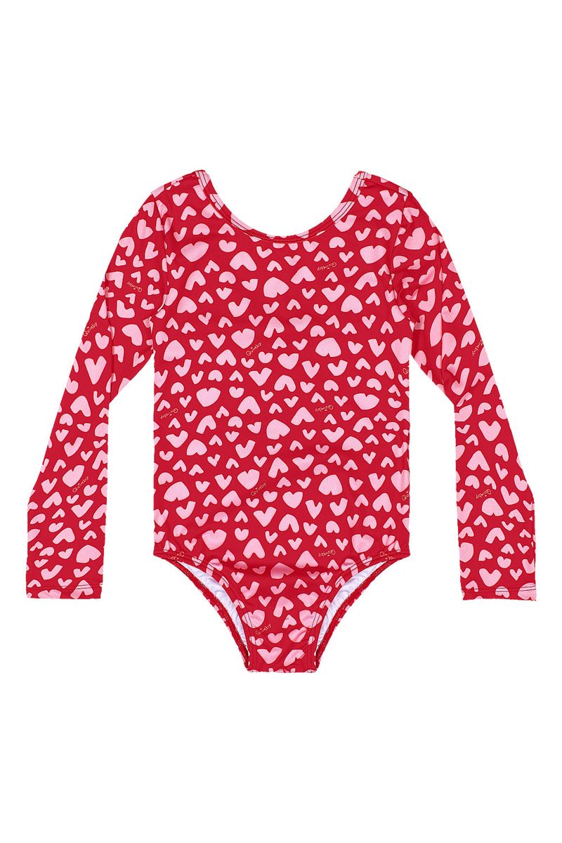 Maiô de manga longa infantil feito em malha UV Dry, que oferece fator de proteção solar 50+ para a segurança das crianças e secagem rápida. Sua composição de poliéster e elastano assegura um caimento confortável. A peça é forrada com microfibra, possui acabamento com elástico nas pernas para melhor ajuste, barra resistente e gola com formato redondo na frente e em U na parte de trás. Apresenta padronagens coloridas e alegres, sendo ideal para a diversão na piscina ou na praia.