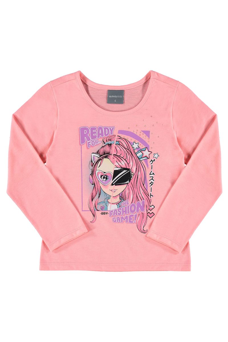 MeninaBlusasBlusas Manga LongaBlusa Infantil para Menina (Rosa Pink) Quimby