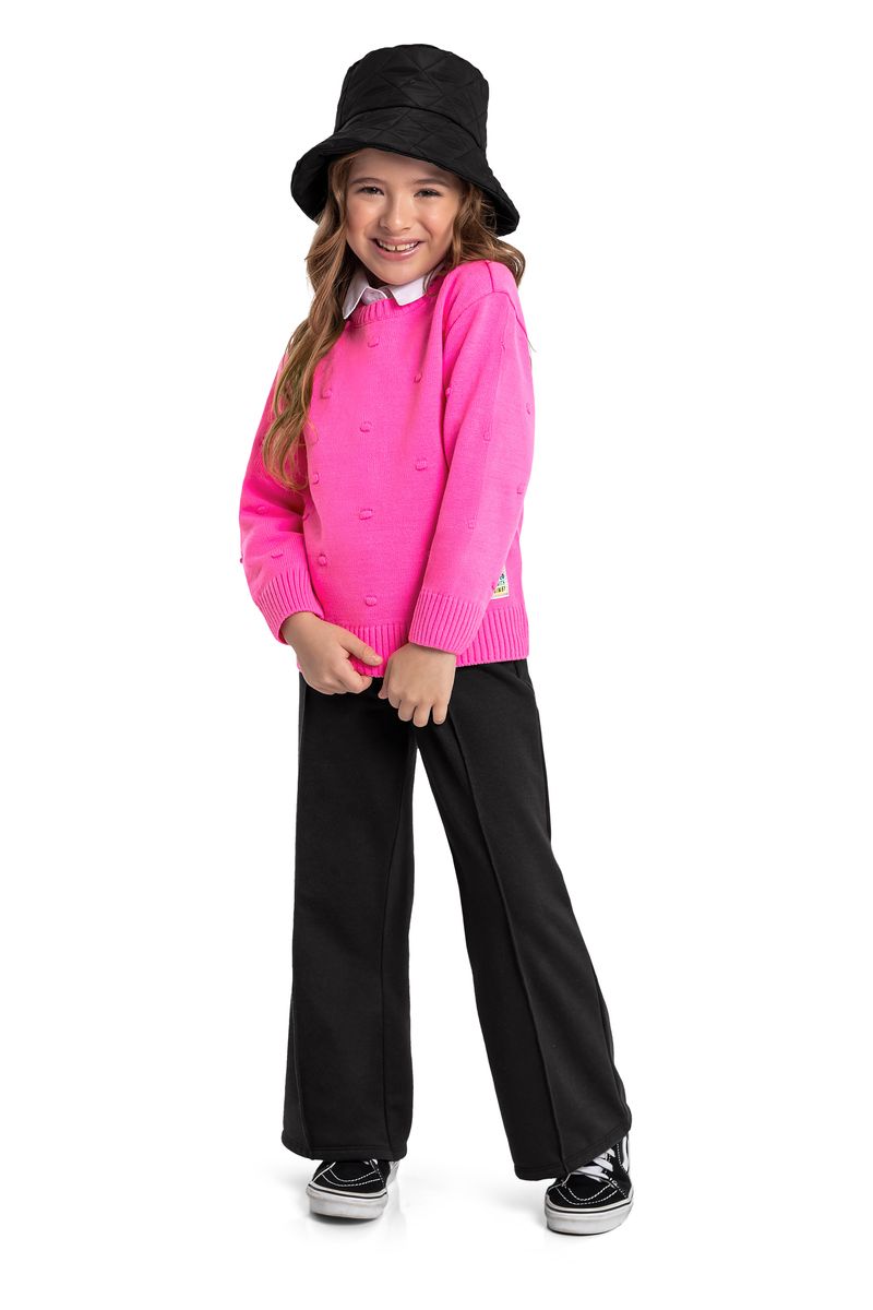 Blusão Manga Longa em Tricot Menina (Rosa) Quimby