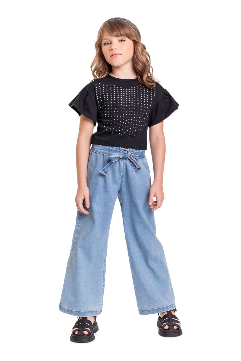 Cropped Infantil em Cotton para Menina (Preto) Quimby
