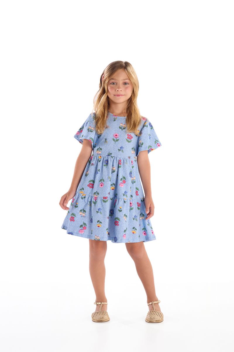 Vestido para menina confeccionado em cotton, tecido de algodão com elastano que oferece conforto e elasticidade. Possui delicada estampa floral, mangas curtas franzidas e recortes também franzidos na frente e nas costas, que garantem caimento soltinho. Conta ainda com plaquinha metálica da marca, trazendo um toque exclusivo. Uma escolha ideal para o verão, criando um visual encantador quando combinado com sandálias ou sapatilhas.
