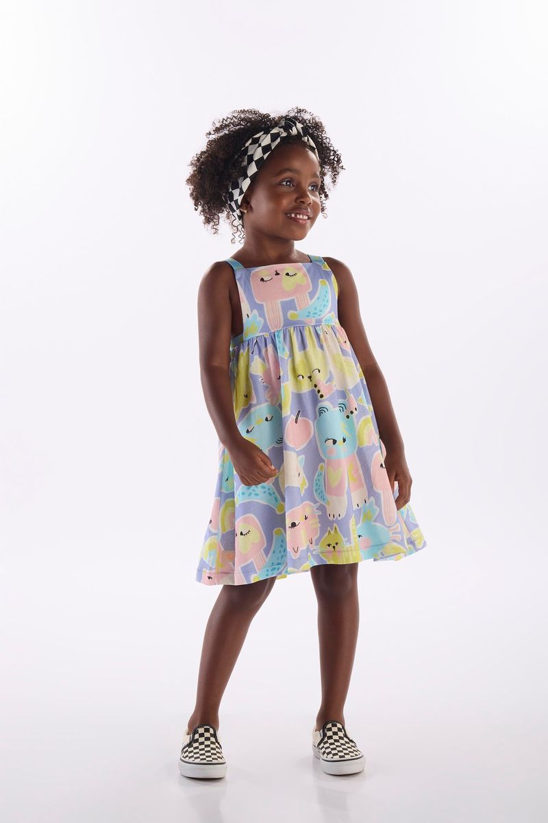 Confeccionado em tecido de algodão com viscose, este vestido infantil da Três e Já oferece o máximo de frescor e conforto para acompanhar a liberdade de movimento das pequenas. Ele exibe uma vibrante estampa digital colorida, repleta de elementos divertidos, alças com elástico personalizado e detalhes franzidos na frente e nas costas. Com sua modelagem ampla e caimento soltinho, é uma peça alegre, prática e ideal para o verão, proporcionando estilo e bem-estar em momentos especiais.