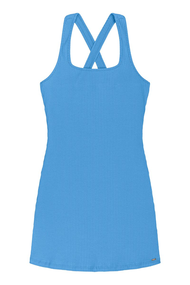 Vestido juvenil, ideal para os dias de calor. Confeccionado em ribana canelada com composição de algodão, poliéster e elastano, oferece liberdade de movimento e caimento ajustado ao corpo. Possui alças médias, decote reto e recorte posterior que garante melhor ajuste, além da plaquinha metálica que adiciona um toque delicado e exclusivo ao look. Versátil e fácil de combinar com tênis ou sandálias, é a escolha perfeita para o dia a dia.