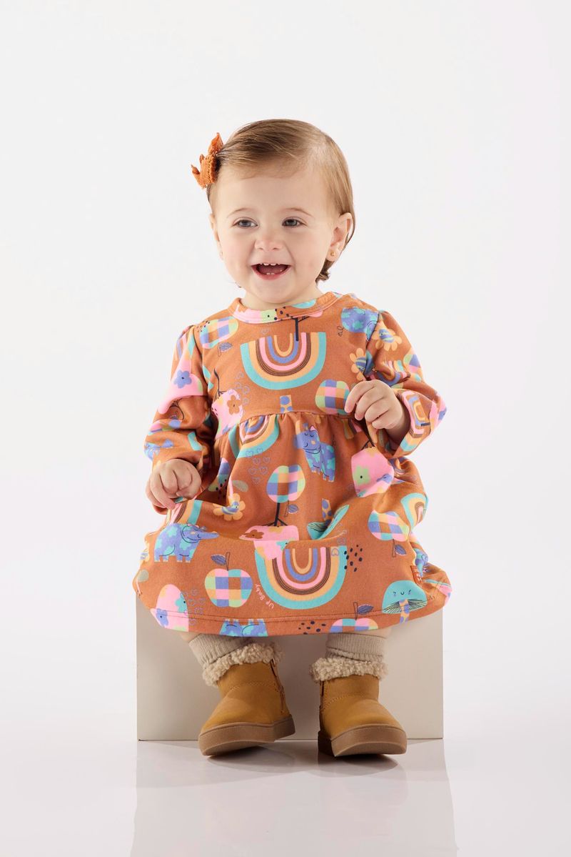 Um vestidinho cheio de elegância e conforto. Feito em malha jacquard xadrez, ele tem um toque macio e estruturado, perfeito para ocasiões especiais. O detalhe da gola dupla delicada e o franzido nos ombros deixam o look ainda mais encantador. Com punhos ajustados e fechamento por botão de pressão nas costas, vestir as pequenas fica super prático.